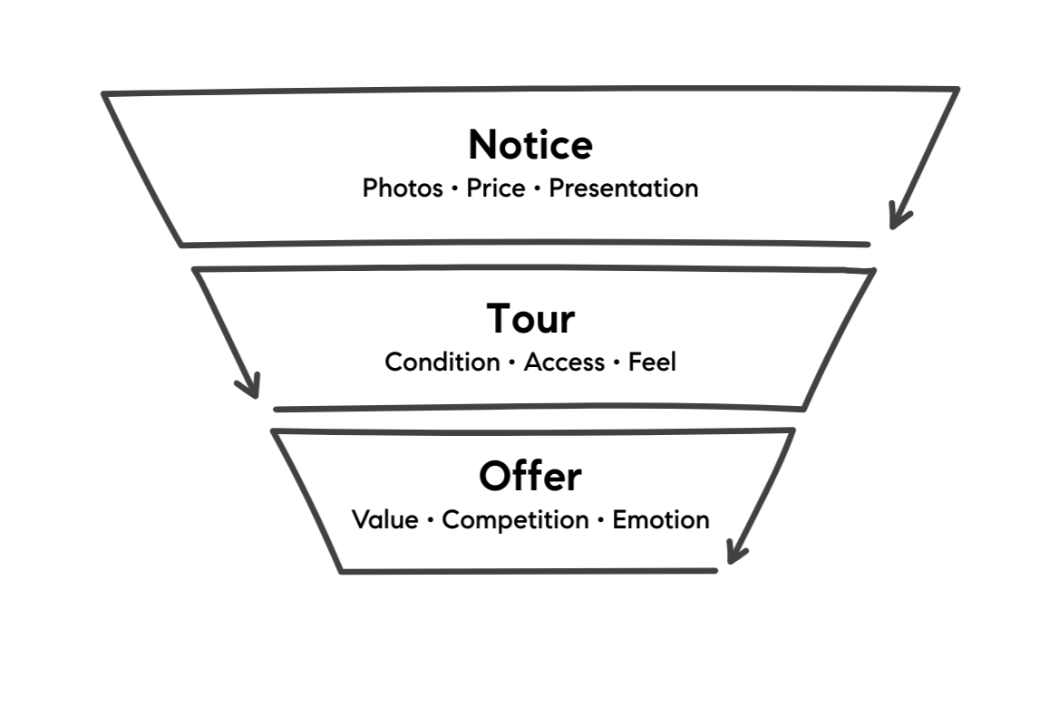 If your listing is getting multiple showings but no offers, this stage broke down. Buyers saw value in touring, but they didn't see enough value to commit.