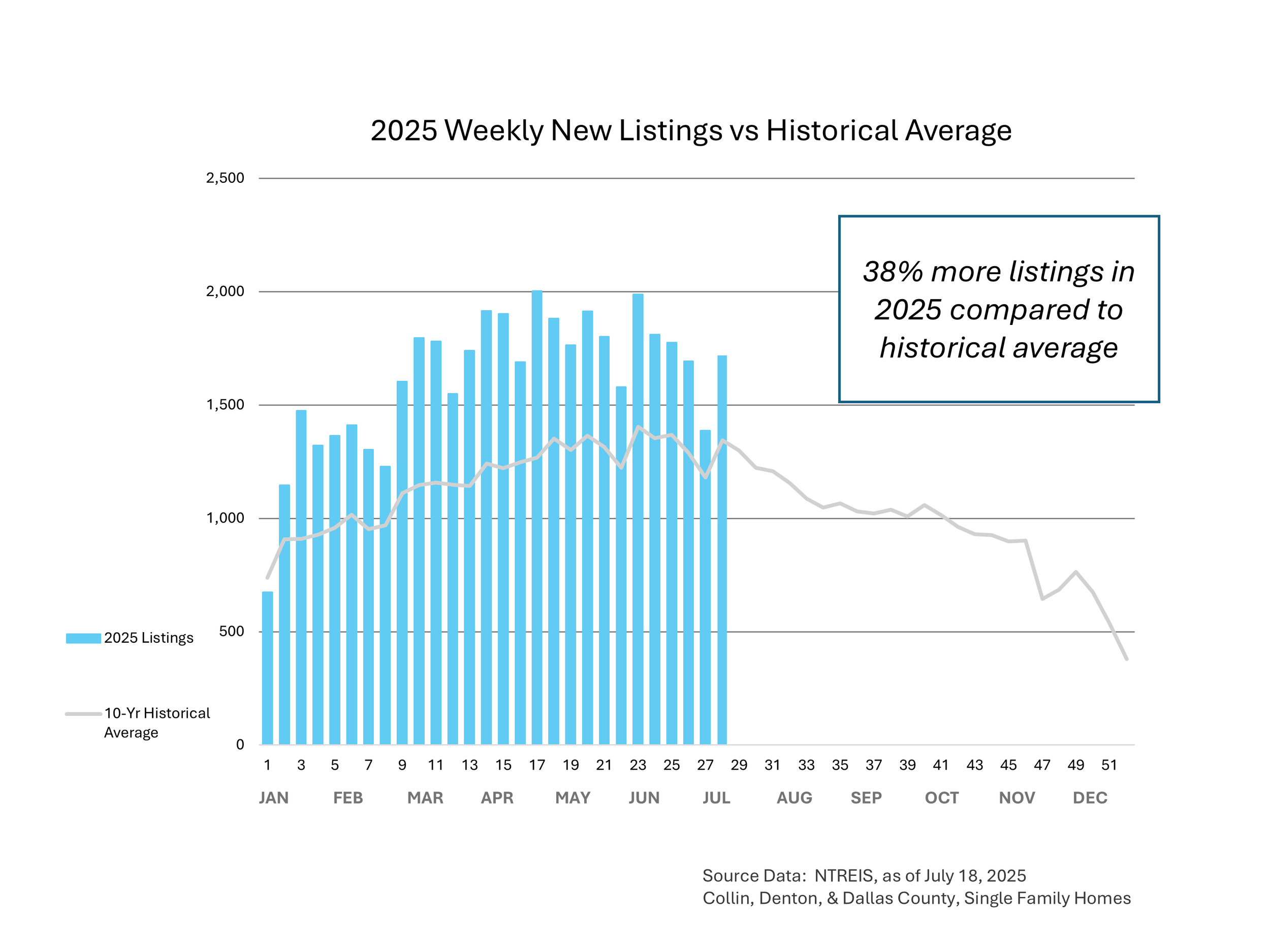 We're seeing 38% more listings this year compared to the 10-year historical average. That translates to about 6 months of housing supply – a far cry from the near-zero inventory of 2021-2022. For buyers, especially those relocating to Dallas, this means choice is back on the table.